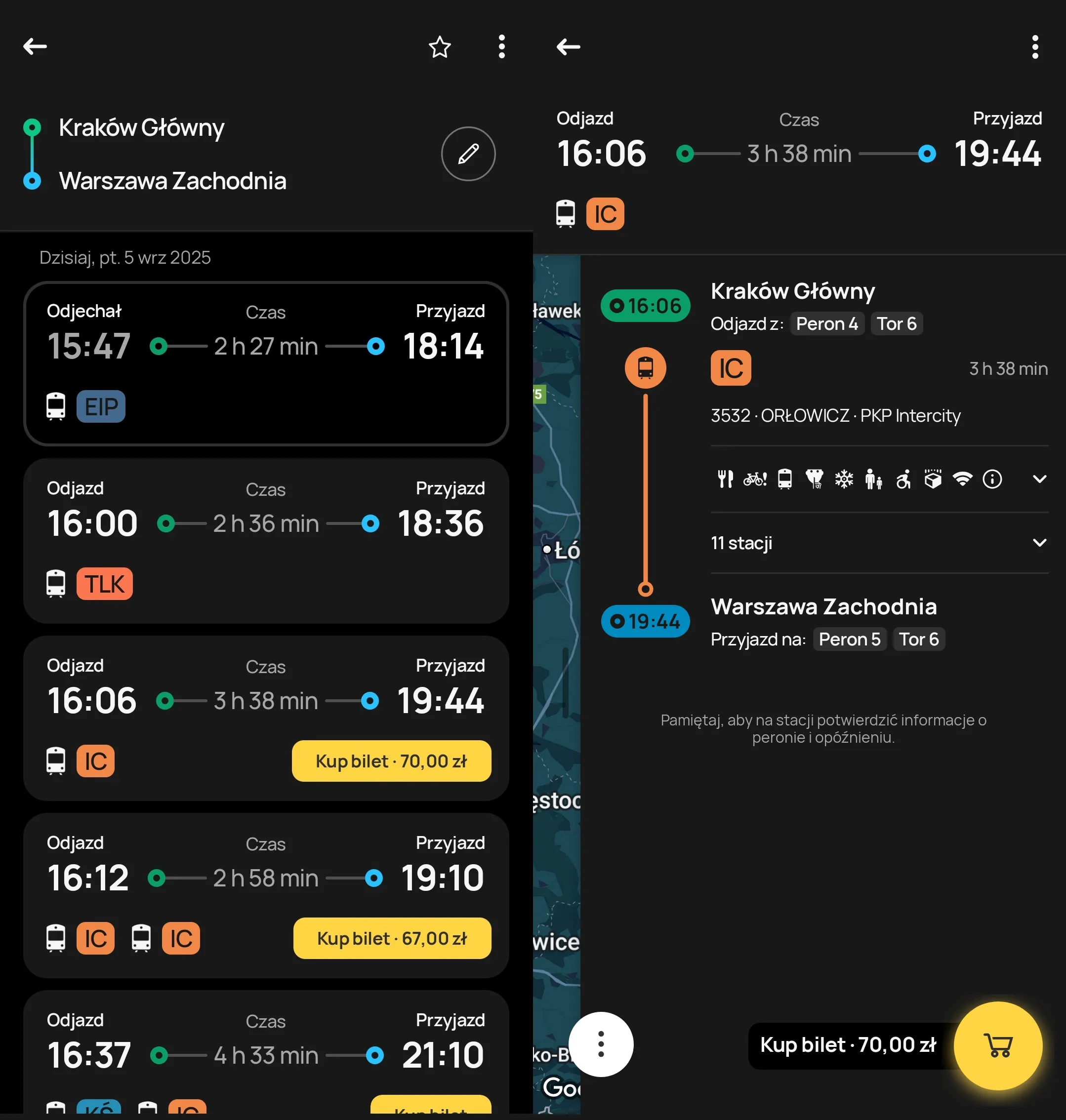 Atkreipkite dėmesį į nurodytus išvykimo ir atvykimo peronus bei kelius – to net oficialioje „LTG Link“ programėlėje nepamatysite. Iš šono kyšantis žemėlapis, gal ir atrodo keistai tačiau jį galima išplėsti ir pasižiūrėti į maršrutą. Lyg ir smulkmenos, bet vis tiek smagu, kad apie jas buvo pagalvota.