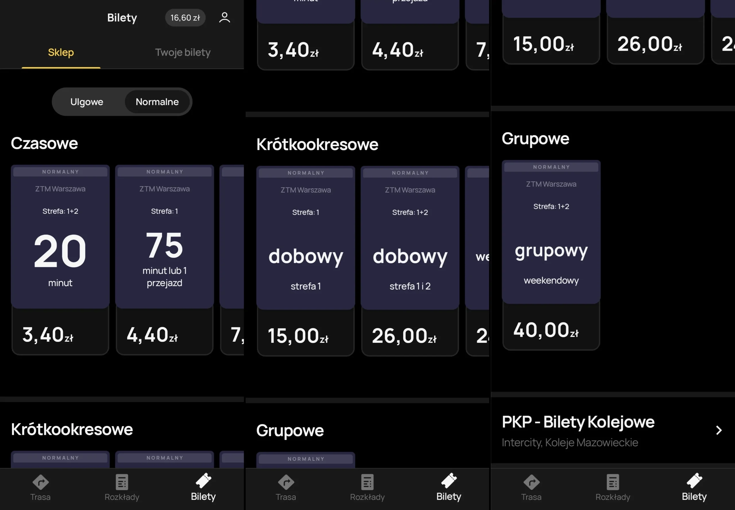 Pavyzdžiui Varšuvoje ir Lodzėje, vienkartinius bilietus galima pirkti iš anksto. Kituose miestuose tokios galimybės nėra, tad pinigai nuskaitomi tik bilietą aktyvavus, panašiai, kaip su „Žiogu“ Kaune.